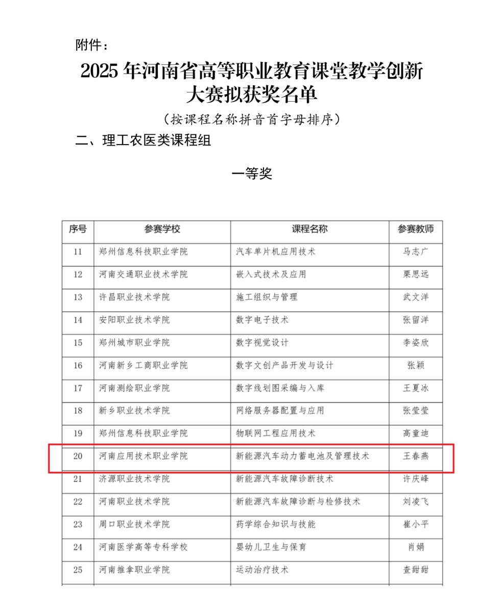 2025年河南省高等职业教育课堂教学创新大赛(理工农医类)评选结果揭晓,我院教师王春燕在激烈竞争中脱颖而出,荣获省级一等奖。此次大赛汇聚了全省101所院校193名教师同台竞技,充分展现了我省职业教育课堂改革的丰硕成果。