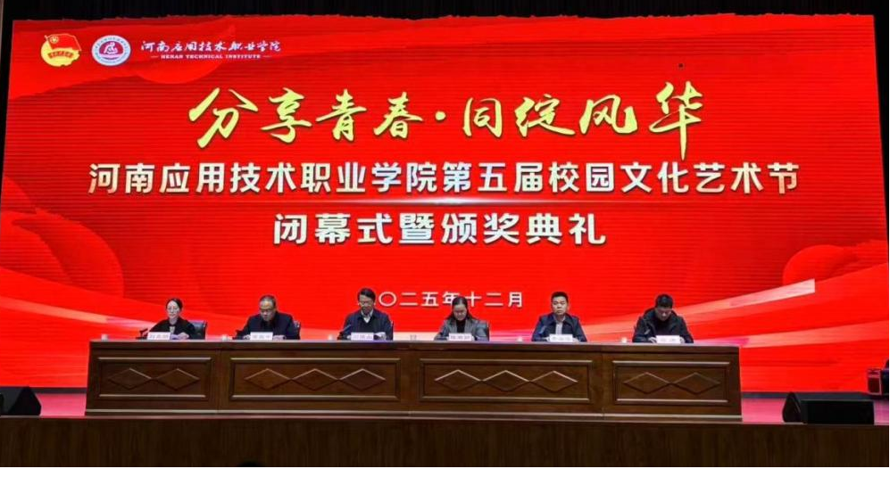 12月2日,河南应用技术职业学院第五届校园文化艺术节闭幕式暨颁奖典礼在郑州校区学生活动中心隆重举行。本届艺术节以“分享青春,同绽风华”为主题,汇聚了全校各院部的优秀艺术作品与精彩展演。